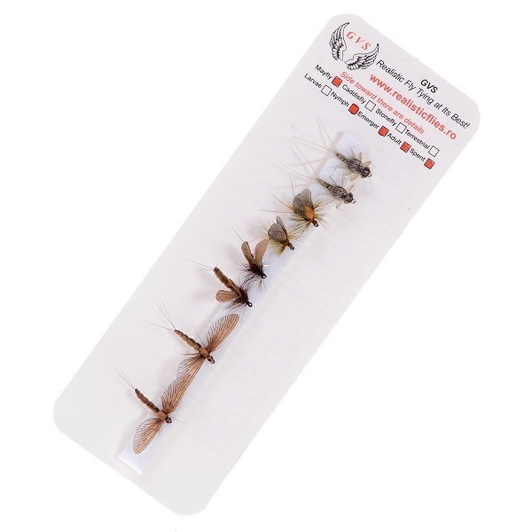 RFP-MF-6 Mayfly pack , incluse 8 pezzi con colori diversi delle seguenti Mosche Realistiche: