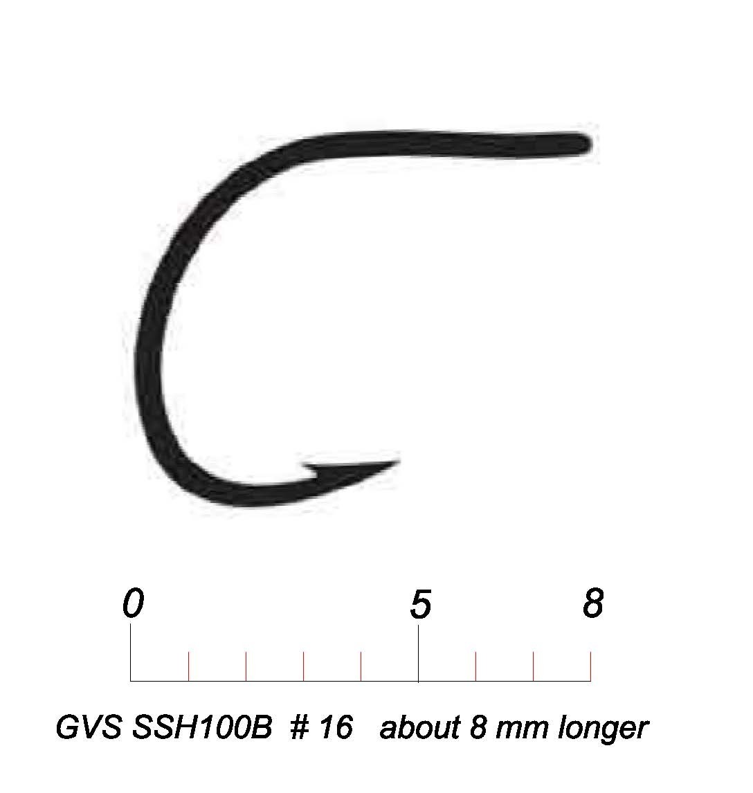 Les Hameçons de Mouche SSH100B constituent un nouveau type d’hameçons Hampe Courte, produits par GVS, qui sont très utiles dans la réalisation des Mouches Sèches et Flottantes. Ces Hameçons sont réalisés et conçus avec une longueur minimale de la hampe de sorte à faciliter une baisse maximale de la visibilité du poids de l’hameçon et une ouverture large vers la pointe de la canne qui permet de garder les poissons le mieux que possible lorsqu’ils mordent à la mouche. La courbure ample garantit que le poisson ne se perd pas dès sa capture et jusqu’à son décrochement.